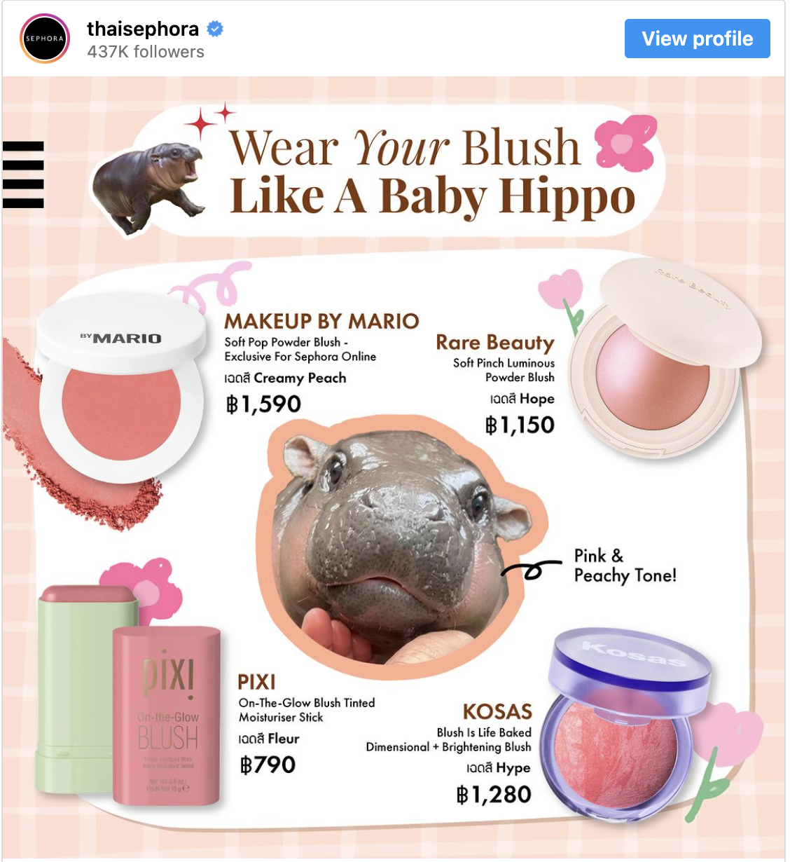 Sephora's Instagram page showcasing the Moo Deng Blush